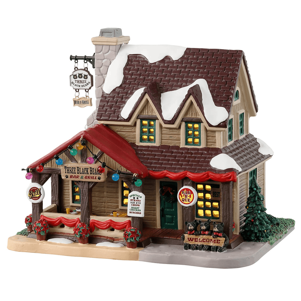 Three Black Bears Bar & Grill Lemax Christmas Village Illuminated Building