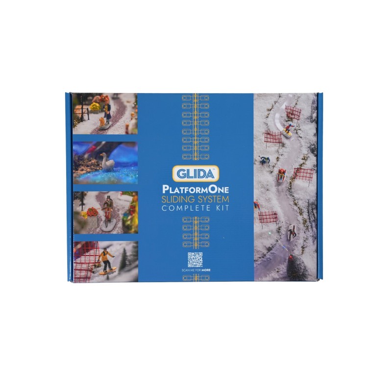 Bring your festive displays to life with the GLIDA PlatformOne Complete Kit (130579EU). This innovative movement system is designed to animate figurines and objects in Christmas villages, model displays, and exhibition showcases, adding a magical sense of motion and realism to your decorations.
