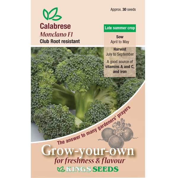 Calabrese seeds - Monclano is a club root resistant variety which produces a firm, domed head with a good standing ability. To be planted in June to July.