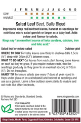 Grow your own tasty colourful salad leaves which are packed full of nutrients. There is nothing quite as special and rewarding as going out to your own garden and selecting home grown produce to use in your meals. Although primarily grown as an ornamental plant for its dark red leaves, Bulls Blood Beet is now mildly used in baby leaf salads. It provides almost crimson colour leaves with a sweet taste to add to any salad.,Seed Count: 80,WHEN TO SOW April to October WHERE TO SOW Outdoors in shallow drills in a sunny position. Cover lightly with soil and keep well watered in dry weather. Sow throughout the season for a regular crop. HARVEST This is a cut-and-come-again crop. Start cutting when the plants are 2-10cm (1-4"") tall and you will harvest up to 5 cuts.