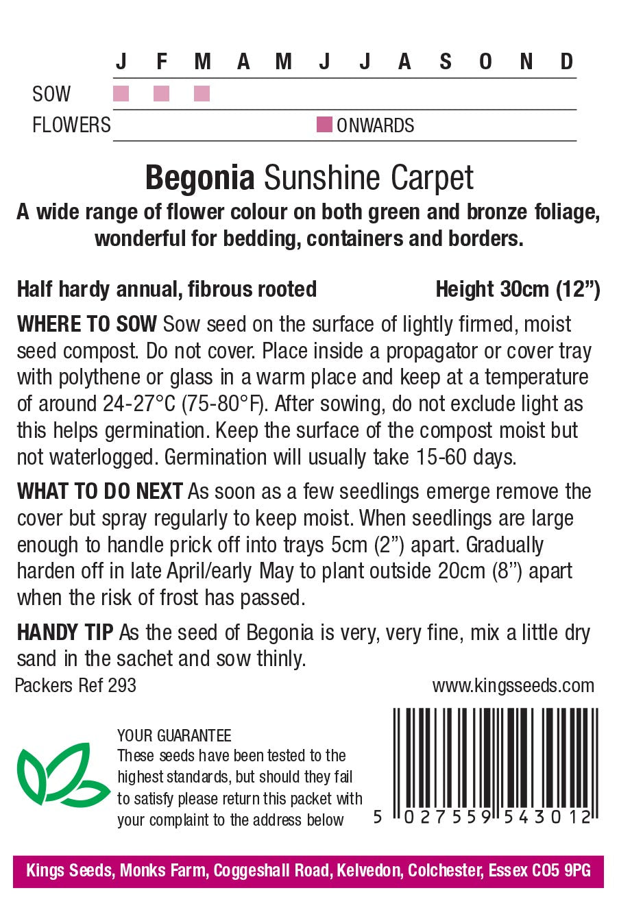 Begonia  Sunshine Carpet by Kings Seeds - Mill Race Garden Centre