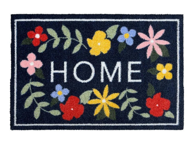 Eco Flex Washable Navy Doormat Floral Home 50x75cm