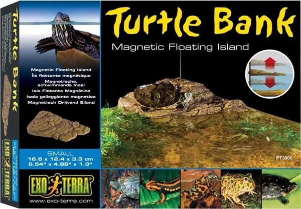 The Exo Terra Turtle Bank is a unique floatation basking area for aquatic turtles. Held in place by magnets, the Exo Terra Turtle Bank can be positioned in the corner of the terrarium to maximize swimming area. Auto adjusting to all water levels, the submerged ramp allows turtles easy access to a dry basking area for maximum exposure to heat and UVB lamps. Available in 3 sizes accommodates any sized aquatic turtle terrarium or to allow multiple sized Turtle Banks within the same terrarium.