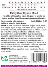Our Pansy Clear Crystal Mixed Seeds produce large, weather-tolerant blooms which provide a wonderful array of colour over an exceptionally long season. Ideal for border edges, bedding, baskets and containers. Plants can be used as annuals, biennials or perennials.