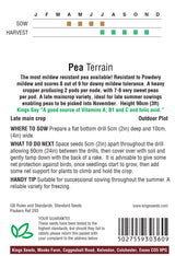 What to do next: Space seeds 5cm (2") apart throughout the drill allowing 60cm (24") between the drills, then cover over with soil and gently tamp down with the back of a rake. It is advisable to give some net protection against birds once seedlings start to grow, then add some net support for plants to climb and hold the crop. Alternatively very early sowings can be made in February or March into a length of plastic gutter or modular cells under glass and then planted out against wires. Slide the contents of the gutter into a shallow drill made in the plot or space modular plants 10-15cm (4-6") apart once hardened off.