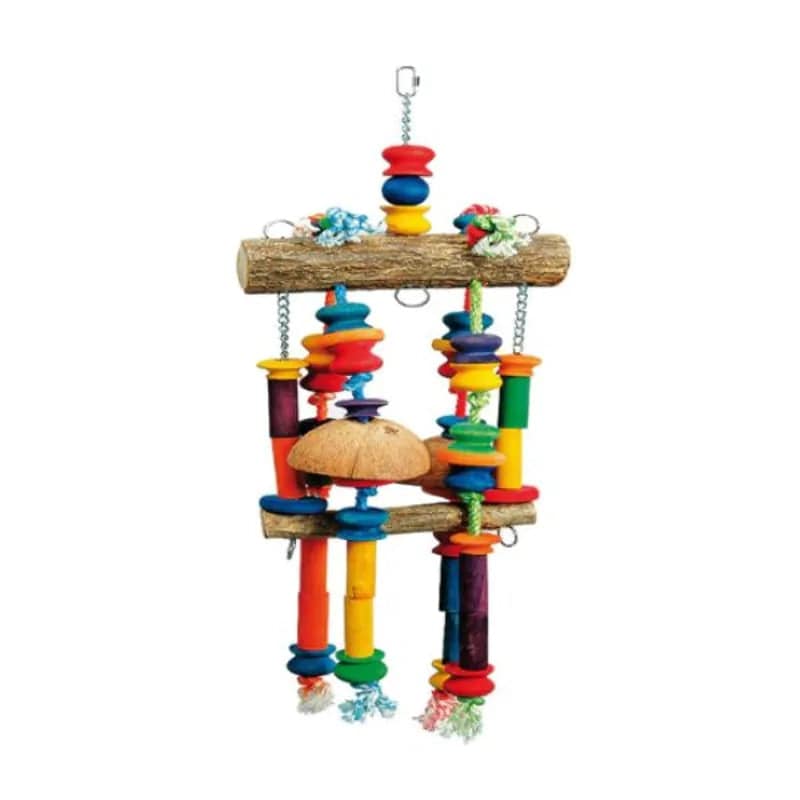 This Coconut Carousel Toy will keep your pet stimulated and occupied, with various of textured objects that they will love to peck at.