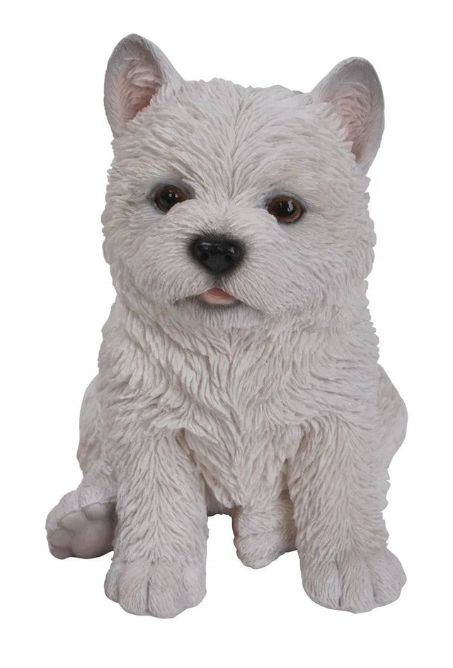 Another new Pet pal, this is a really cute addition to the Vivid Arts range. A gorgeous resin West Highlands Puppy! Each resin Puppy comes in a cardboard carrier with wood shavings in the bottom.